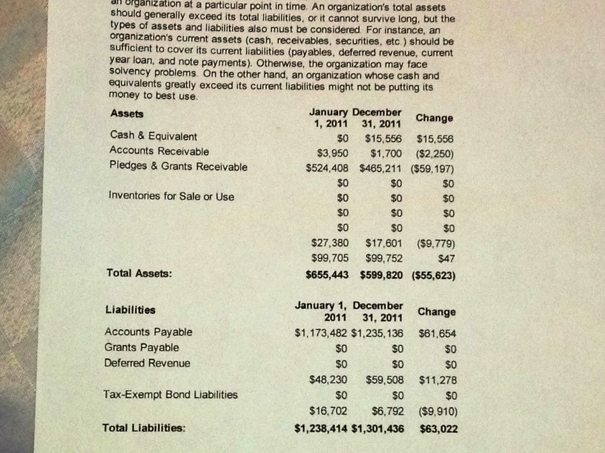 Then in 2011, which is the only other tax return listed, this same agency is documented as having negative assets and liabilities. And why are there no tax returns for the missing years?
